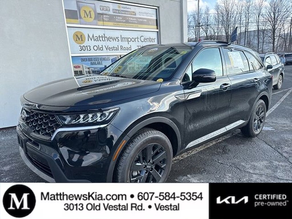 "Matthews Import Center promises each customer a thorough and confident 120-point inspection on our used inventory guaranteeing a relaxing and peace-of-mind experience. We are located behind Lowes in Vestal NY. Or call us at (607) 729 - 6261Matthews Import Center3013 Old Vestal RoadVestal NY 13850. Certified. Ebony Black 2021 Kia S Sorento AWD 8-Speed Automatic 2.5L I4 DGI DOHC 16V LEV3-ULEV70 191hpKia Certified Pre-Owned Details: * Powertrain Limited Warranty: 120 Month/100000 Mile (whichever comes first) from original in-service date * Includes Rental Car and Trip Interruption Reimbursement. 3 month Sirius trial subscription * 165 Point Inspection * Roadside Assistance * Vehicle History * Warranty Deductible: $50 * Limited Warranty: 12 Month/12000 Mile (whichever comes first) ""Platinum Coverage""from certified purchase date * Transferable Warranty"