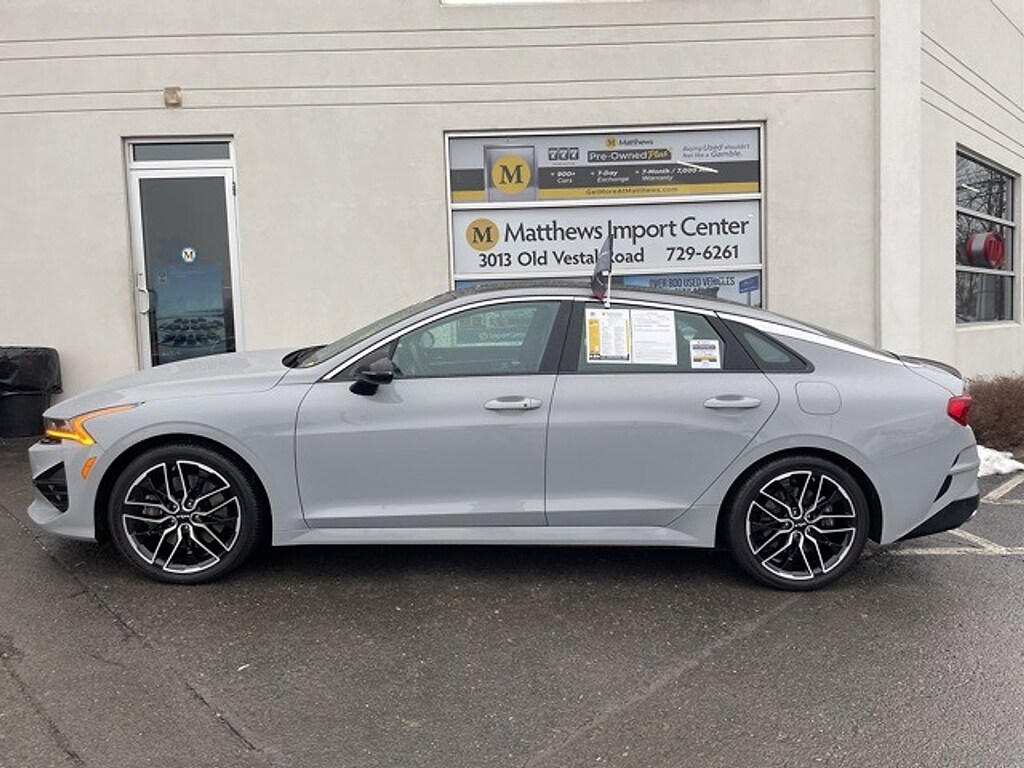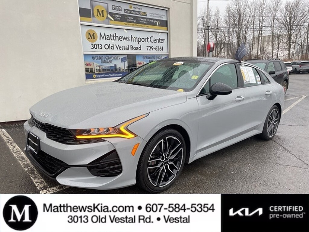 "Matthews Import Center promises each customer a thorough and confident 120-point inspection on our used inventory guaranteeing a relaxing and peace-of-mind experience. We are located behind Lowes in Vestal NY. Or call us at (607) 729 - 6261Matthews Import Center3013 Old Vestal RoadVestal NY 13850. Certified. Wolf Gray 2023 Kia GT K5 FWD 8 Speed Dual Clutch 2.5L I4 DGI Turbocharged DOHC 16V LEV3-ULEV70 290hp24/32 City/Highway MPGKia Certified Pre-Owned Details: * Transferable Warranty * Vehicle History * Roadside Assistance * Includes Rental Car and Trip Interruption Reimbursement. 3 month Sirius trial subscription * Limited Warranty: 12 Month/12000 Mile (whichever comes first) ""Platinum Coverage""from certified purchase date * Powertrain Limited Warranty: 120 Month/100000 Mile (whichever comes first) from original in-service date * 165 Point Inspection * Warranty Deductible: $50"