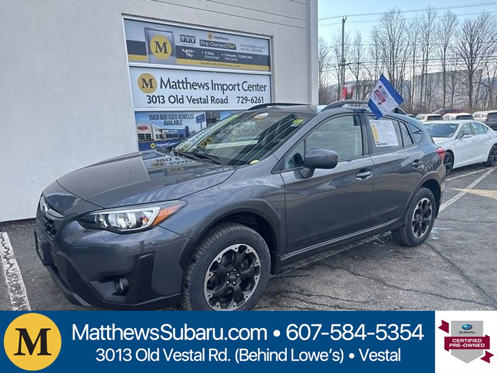 Matthews Import Center promises each customer a thorough and confident 120-point inspection on our used inventory guaranteeing a relaxing and peace-of-mind experience. We are located behind Lowes in Vestal NY. Or call us at (607) 729 - 6261Matthews Import Center3013 Old Vestal RoadVestal NY 13850. Certified. Magnetite Gray Metallic 2023 Subaru Premium Crosstrek AWD Lineartronic CVT 2.0L 4-Cylinder DOHC 16VOdometer is 9058 miles below market average! 28/33 City/Highway MPGSubaru Certified Pre-Owned Details: * Transferable Warranty * Warranty Deductible: $0 * Powertrain Limited Warranty: 84 Month/100000 Mile (whichever comes first) from original in-service date * Vehicle History * Roadside Assistance * SiriusXM 3-Month trial subscription $500 Owner Loyalty coupon & 1 year trial subscription to STARLINK * 152 Point Inspection