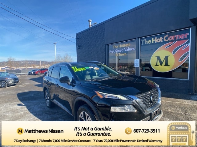 Motor: 2.5L I-4 cyl, Transmisión: Variable, Millaje: 70,143 miles miles, Rango de MPG: 26.0/34.0, Color Exterior: Super Black, Color interior: Charcoal,Stock #: N5301A, Ubicación: Matthews Nissan, Comentarios: Super Black 2021 Nissan Rogue SV FWD CVT with Xtronic 2.5L I4 DOHC 16V