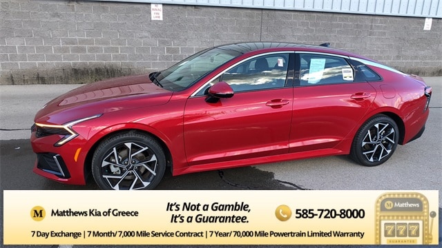 Engine: 2.5L I4, Transmission: 8-Speed Automatic, Mileage: 20,043 miles miles, MPG Range: 25.0/, Exterior Color: Runway Red, Interior Color: Black,Stock #: KG5193XA, Location: Matthews Kia of Greece, Comments: Runway Red 2025 Kia K5 EX FWD 8-Speed Automatic I4