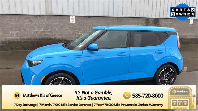 Engine: 2L I4 DOHC, Transmission: CVT, Mileage: 20,494 miles miles, MPG Range: 28.0/, Exterior Color: Surf Blue, Interior Color: Black,Stock #: KG5444A, Location: Matthews Kia of Greece, Comments: Surf Blue 2023 Kia Soul EX FWD CVT 2.0L I4 DOHC