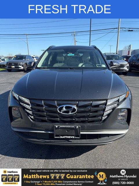 Engine: 2.5L I-4 cyl, Transmission: Automatic, Mileage: 31,910 miles miles, MPG Range: 23.0/28.0, Exterior Color: Portofino Gray, Interior Color: Gray,Stock #: UH1329L, Location: Matthews Hyundai of Greece, Comments: Portofino Gray 2023 Hyundai Tucson SEL AWD 8-Speed Automatic with SHIFTRONIC 2.5L I4 DGI DOHC 16V LEV3-ULEV70 187hp AWD, 10.25" Digital Instrument Cluster, 3.648 Axle Ratio, 4-Wheel Disc Brakes, 6 Speakers, ABS brakes, Air Conditioning, Alloy wheels, AM/FM radio: SiriusXM, Apple CarPlay & Android Auto, Auto High-beam Headlights, Auto-Dimming Interior Mirror w/Homelink, Brake assist, Bumpers: body-color, Cargo Net, Cargo Tray, Carpeted Floor Mats, Convenience Package, Delay-off headlights, Driver door bin, Driver vanity mirror, Dual Automatic Temperature Control, Dual front impact airbags, Dual front side impact airbags, Electronic Stability Control, Emergency communication system: Blue Link Connected Car Service (3-year complimentary subscription), First Aid Kit, Four wheel independent suspension, Front and Rear Mudguards, Front anti-roll bar, Front Bucket Seats, Front Center Armrest, Front reading lights, Fully automatic headlights, H-Tex Seat Trim, Heated door mirrors, Heated Front Bucket Seats, Heated front seats, Illuminated entry, Leather-Wrapped Shift Knob, Leather-Wrapped Steering Wheel, LED Interior Lights (Room, Map), Low tire pressure warning, Occupant sensing airbag, Option Group 02, Outside temperature display, Overhead airbag, Overhead console, Panic alarm, Passenger door bin, Passenger vanity mirror, Power door mirrors, Power driver seat, Power Liftgate, Power steering, Power Sunroof, Power windows, Radio data system, Radio: AM/FM/HD/SiriusXM Audio System, Rear anti-roll bar, Rear Bumper Applique, Rear seat center armrest, Rear window defroster, Rear window wiper, Remote keyless entry, Roof rack: rails only, Security system, Speed control, Split folding rear seat, Spoiler, Stain & Odor Resistant Cloth Seat Trim, Steering wheel mounted audio controls, Tachometer, Telescoping steering wheel, Tilt steering wheel, Traction control, Trip computer, Turn signal indicator mirrors, Ultrasonic Rear Occupant Alert, Variably intermittent wipers, Wheel Locks, Wheels: 17" x 7.0J" Alloy, Wheels: 19" x 7.5J" Machine-Face Finish Alloy.
