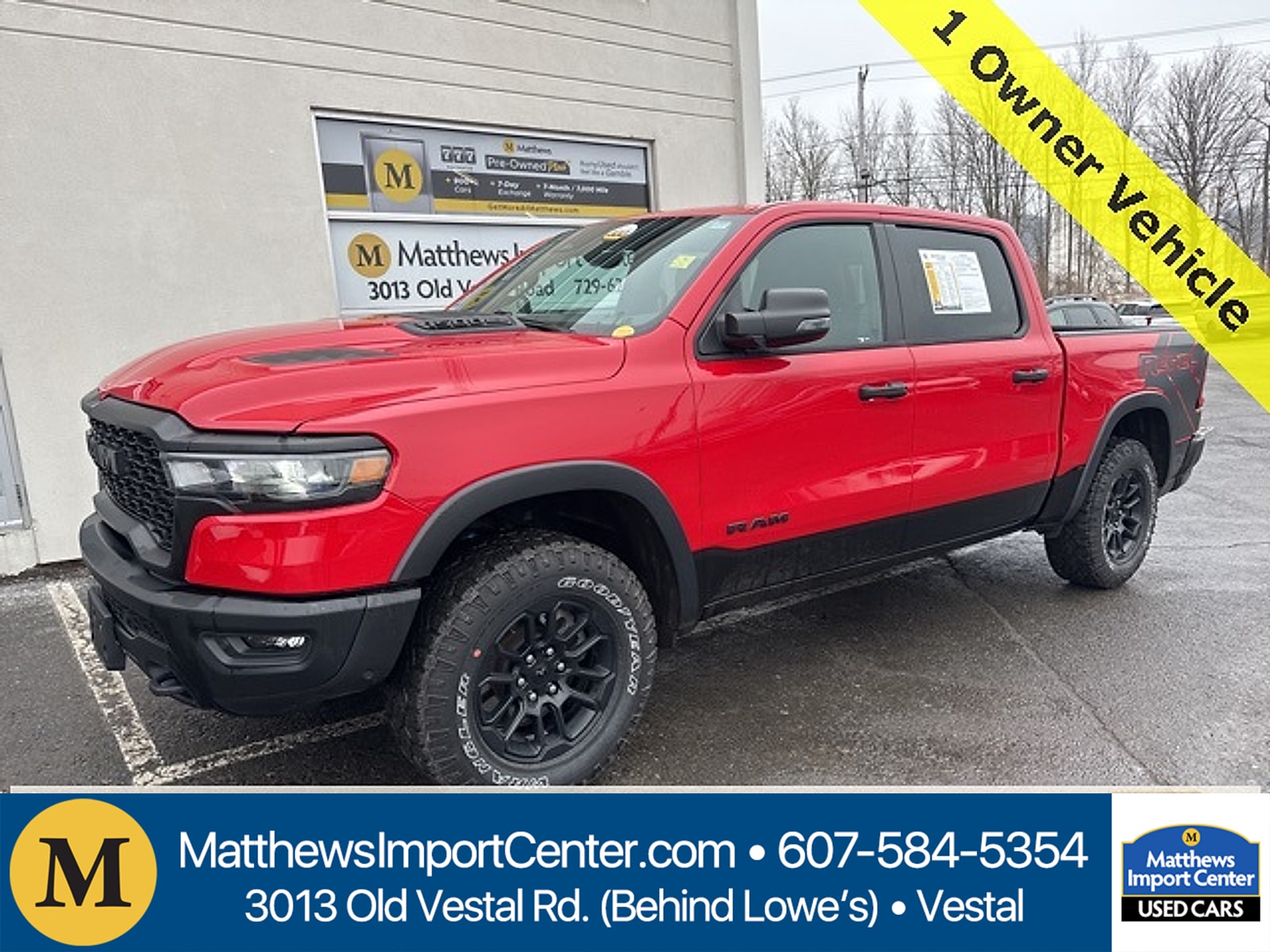 Engine: 3.0L I-6 cyl, Transmission: Automatic, Mileage: 26,428 miles miles, MPG Range: 17.0/24.0, Exterior Color: Flame Red Clearcoat, Interior Color: Black,Stock #: A4955Z, Location: Matthews Kia, Comments: Matthews Import Center promises each customer a thorough and confident 120-point inspection on our used inventory guaranteeing a relaxing and peace-of-mind experience. We are located behind Lowes in Vestal NY. Or call us at (607) 729 - 6261Matthews Import Center3013 Old Vestal RoadVestal NY 13850. Flame Red Clearcoat 2025 Ram Rebel 1500 4WD 8-Speed Automatic 3.0L I6Awards: * Motor Trend Automobiles of the year