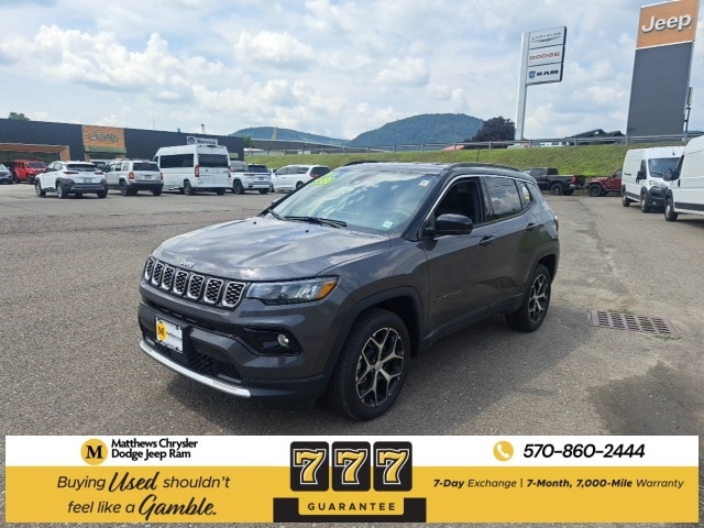 Engine: 2.0L I-4 cyl, Transmission: 8-Speed Automatic, Mileage: 4,110 miles miles, MPG Range: 24.0/32.0, Exterior Color: Baltic Gray Metallic Clearcoat, Interior Color: Black,Stock #: DR1189, Location: Matthews Chrysler Dodge Jeep Ram, Comments: Baltic Gray Metallic Clearcoat 2024 Jeep Compass Limited 4WD 8-Speed Automatic 2.0L I4 DOHC
