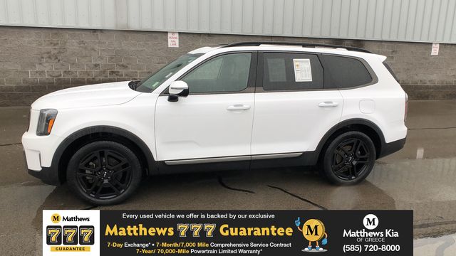 Engine: 3.8L V6 DGI DOHC Dual CVVT, Transmission: 8-Speed Automatic, Mileage: 42,769 miles miles, MPG Range: 18.0/, Exterior Color: Glacial White Pearl, Interior Color: Black,Stock #: KG5398A, Location: Matthews Kia of Greece, Comments: Glacial White Pearl 2023 Kia Telluride SX X-Line AWD 8-Speed Automatic 3.8L V6 DGI DOHC Dual CVVT