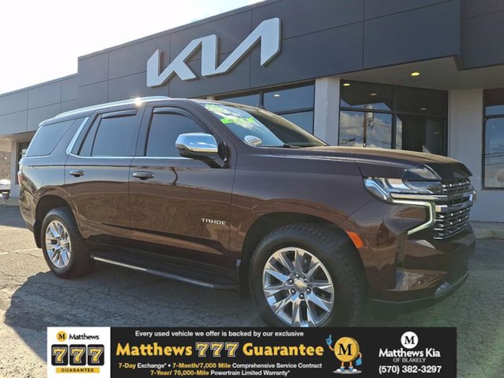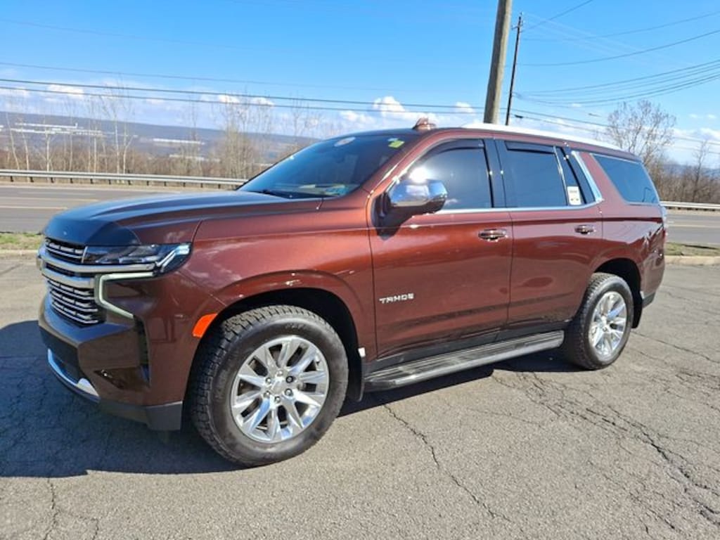 Auburn Metallic 2023 Chevrolet Tahoe Premier 4WD 10-Speed Automatic with Overdrive EcoTec3 5.3L V8 4WD, Jet Black/Maple Sugar Leather.