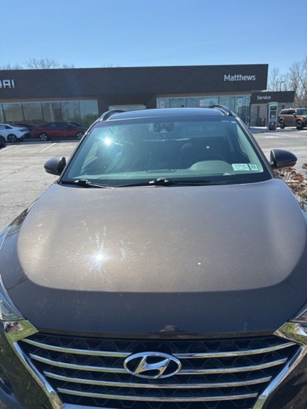 Sage Brown 2020 Hyundai Tucson Ultimate AWD 6-Speed Automatic with Shiftronic 2.4L I4 DGI DOHC 16V AWD, 18" x 7.0J Alloy Wheels, 4-Wheel Disc Brakes, 8 Speakers, ABS brakes, Air Conditioning, Alloy wheels, AM/FM radio: SiriusXM, Apple CarPlay & Android Auto, Auto High-beam Headlights, Auto-dimming Rear-View mirror, Automatic temperature control, Axle Ratio: 3.195, Brake assist, Bumpers: body-color, Carpeted Floor Mats, Delay-off headlights, Driver door bin, Driver vanity mirror, Dual front impact airbags, Dual front side impact airbags, Electronic Stability Control, Emergency communication system, Exterior Parking Camera Rear, Four wheel independent suspension, Front anti-roll bar, Front Bucket Seats, Front Center Armrest, Front dual zone A/C, Front fog lights, Front reading lights, Fully automatic headlights, Garage door transmitter: HomeLink, Heated & Ventilated Front Bucket Seats, Heated door mirrors, Heated front seats, Heated rear seats, Heated steering wheel, Illuminated entry, Leather Seat Trim, Leather Shift Knob, Low tire pressure warning, Mudguards, Navigation System, Occupant sensing airbag, Option Group 01, Outside temperature display, Overhead airbag, Overhead console, Panic alarm, Passenger door bin, Passenger vanity mirror, Power door mirrors, Power driver seat, Power Liftgate, Power moonroof, Power passenger seat, Power steering, Power windows, Radio: Infinity Audio System w/Navigation, Rain sensing wipers, Rear anti-roll bar, Rear reading lights, Rear seat center armrest, Rear window defroster, Rear window wiper, Remote keyless entry, Reversible Cargo Tray, Roof rack: rails only, Security system, Speed control, Speed-sensing steering, Split folding rear seat, Spoiler, Steering wheel mounted audio controls, Tachometer, Telescoping steering wheel, Tilt steering wheel, Traction control, Trip computer, Turn signal indicator mirrors, Variably intermittent wipers, Ventilated front seats, Wheel Locks.