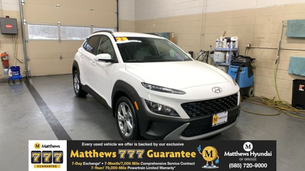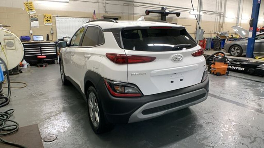 Lunar White 2023 Hyundai Kona SEL AWD CVT 2.0L I4 DOHC Dual CVVT 17" x 7.0J Alloy Wheels, 4-Wheel Disc Brakes, 5.715 Axle Ratio, 6 Speakers, ABS brakes, Air Conditioning, Alloy wheels, AM/FM radio: SiriusXM, Apple CarPlay & Android Auto, Brake assist, Bumpers: body-color, Cargo Net, Cargo Tray, Carpeted Floor Mats, Cloth Seat Trim, Delay-off headlights, Driver door bin, Driver vanity mirror, Dual front impact airbags, Dual front side impact airbags, Electronic Stability Control, Emergency communication system: Blue Link Connected Car Service (3-year complimentary subscription), Exterior Parking Camera Rear, Four wheel independent suspension, Front & Rear Mudguards, Front anti-roll bar, Front Bucket Seats, Front Center Armrest, Front reading lights, Fully automatic headlights, Heated door mirrors, Illuminated entry, Low tire pressure warning, Occupant sensing airbag, Option Group 01, Outside temperature display, Overhead airbag, Overhead console, Panic alarm, Passenger door bin, Passenger vanity mirror, Power door mirrors, Power driver seat, Power steering, Power windows, Radio: AM/FM/HD/SiriusXM Audio System, Rear anti-roll bar, Rear seat center armrest, Rear window defroster, Rear window wiper, Remote keyless entry, Security system, Speed control, Speed-sensing steering, Split folding rear seat, Spoiler, Steering wheel mounted audio controls, Tachometer, Telescoping steering wheel, Tilt steering wheel, Traction control, Trip computer, Turn signal indicator mirrors, Variably intermittent wipers.