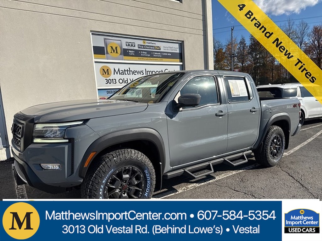 Matthews Import Center promises each customer a thorough and confident 120-point inspection on our used inventory guaranteeing a relaxing and peace-of-mind experience. We are located behind Lowes in Vestal NY. Or call us at (607) 729 - 6261Matthews Import Center3013 Old Vestal RoadVestal NY 13850. Boulder Gray Pearl 2023 Nissan PRO-4X Frontier 4WD 9-Speed Automatic 3.8L DI DOHC 24V V6