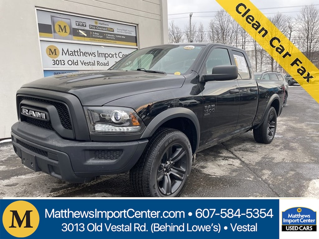 Matthews Import Center promises each customer a thorough and confident 120-point inspection on our used inventory guaranteeing a relaxing and peace-of-mind experience. We are located behind Lowes in Vestal NY. Or call us at (607) 729 - 6261Matthews Import Center3013 Old Vestal RoadVestal NY 13850. Diamond Black Crystal Pearlcoat 2022 Ram Warlock 1500 Classic 4WD 8-Speed Automatic 3.6L V6 24V VVTOdometer is 4534 miles below market average!