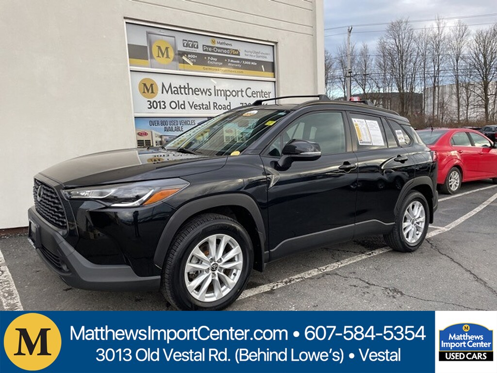Matthews Import Center promises each customer a thorough and confident 120-point inspection on our used inventory guaranteeing a relaxing and peace-of-mind experience. We are located behind Lowes in Vestal NY. Or call us at (607) 729 - 6261Matthews Import Center3013 Old Vestal RoadVestal NY 13850. Black 2022 Toyota LE Corolla Cross AWD CVT 2.0L I4 PDI DOHC 16V LEV3-SULEV30 169hp29/32 City/Highway MPG